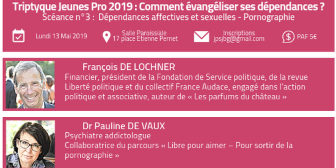 Les Jeunes Pros de la paroisse Saint-Jean-Baptiste-de-Grenelle vous invitent à leur “Soirée triptyque n° 3” dans le cadre du cycle “Comment évangéliser ses dépendances”, sur le thème :